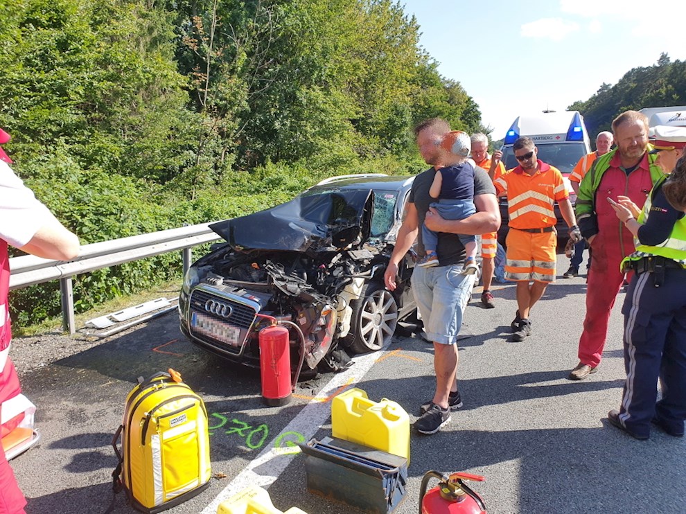 Kurz vor der Abfahrt Sebersdorf/Bad Waltersdorf fuhr ein PKW auf einen LKW auf.