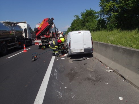 Auf höhe der Kontrollstation (Nestelbach) Fahrtrichtung Graz, touchierte ein Kleintransporter seitlich einen LKW.
