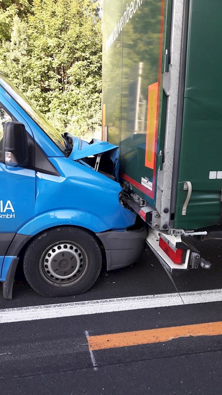 Ein Transporter ist aus ungeklärter Ursache auf einen LKW aufgefahren, verletzt wurde hierbei zum Glück niemand.