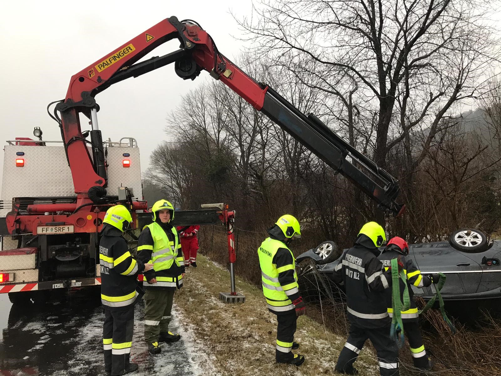 Gemeinsam mit der FF Ilz sicherten wir die Unfallstelle und stellten wir das Unfall-KFZ verkehrssicher ab.