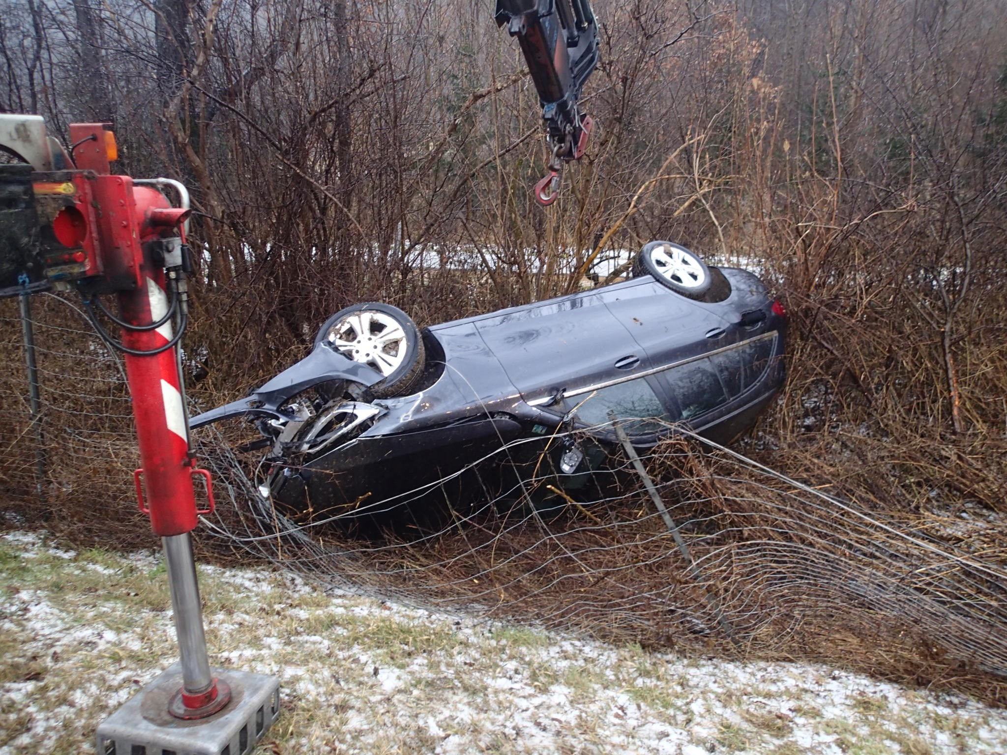 woraufhin sich dieser überschlug und am Dach liegen geblieben ist.