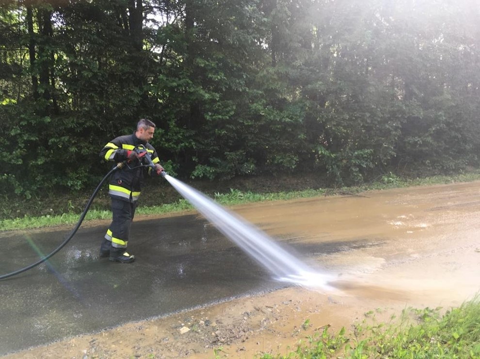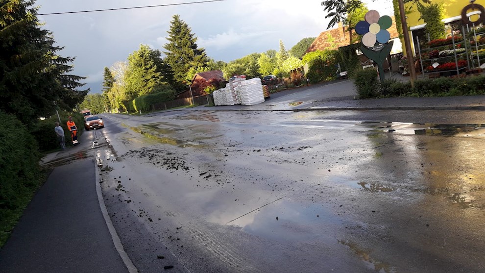 Fahrbahnen wurden gemeinsam mit dem Straßenerhaltungsdienst gereinigt, sowie ein Baum entfernt der die Straße blockierte.