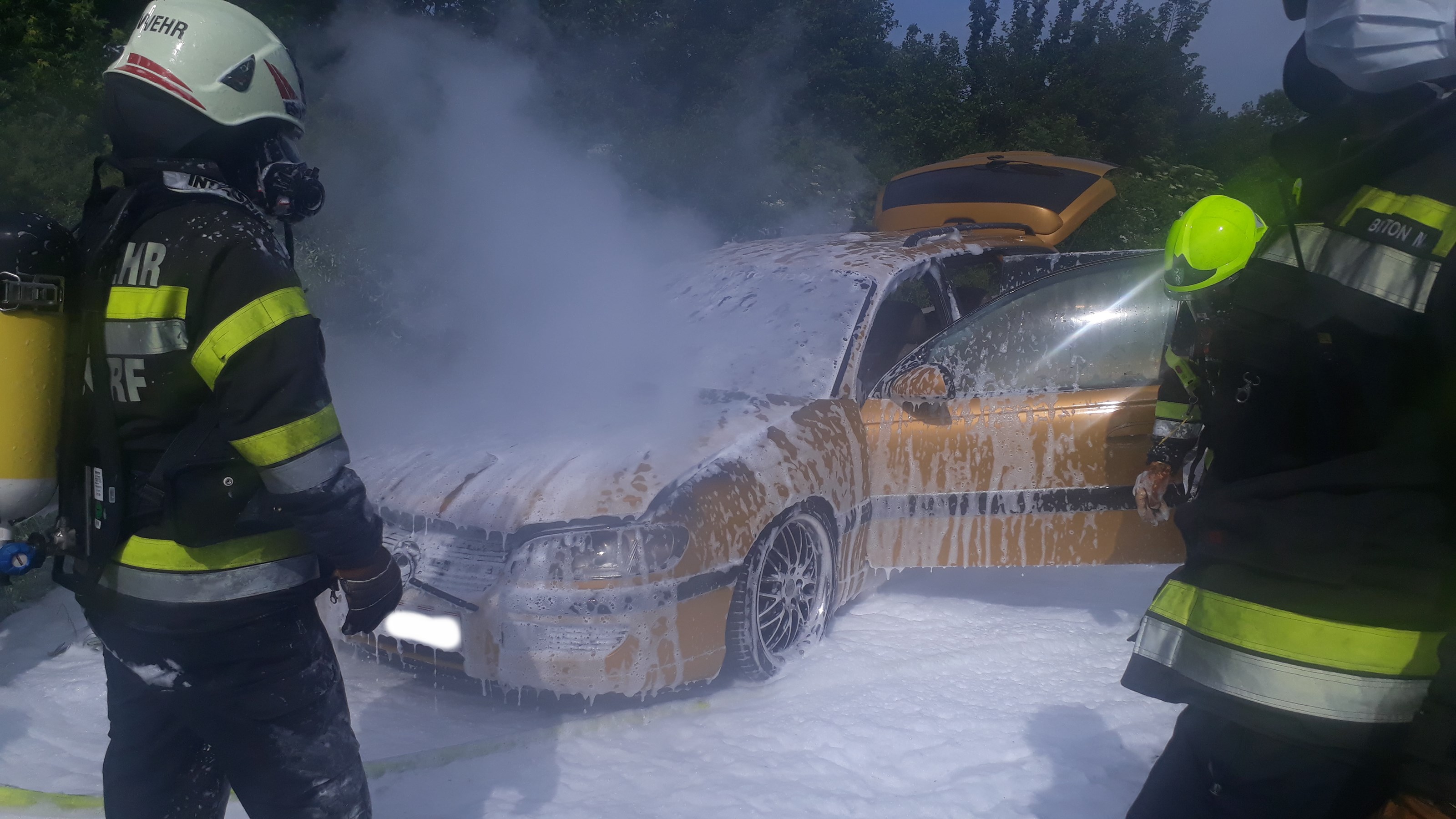 Aus ungeklärter Ursache brach im Motorraum des Fahrzeuges ein Feuer aus.
