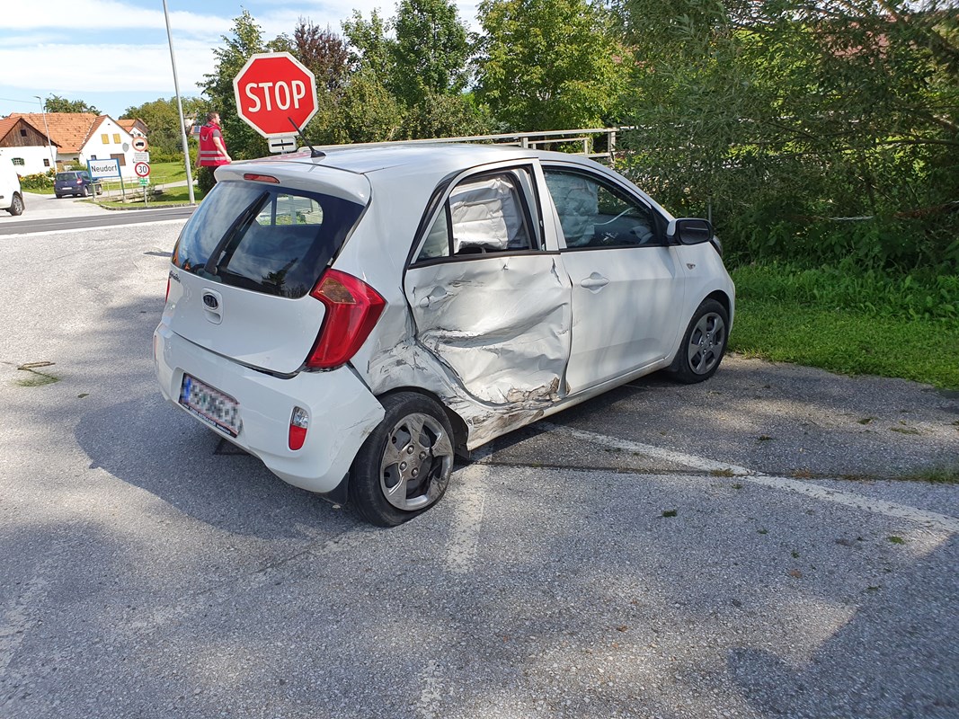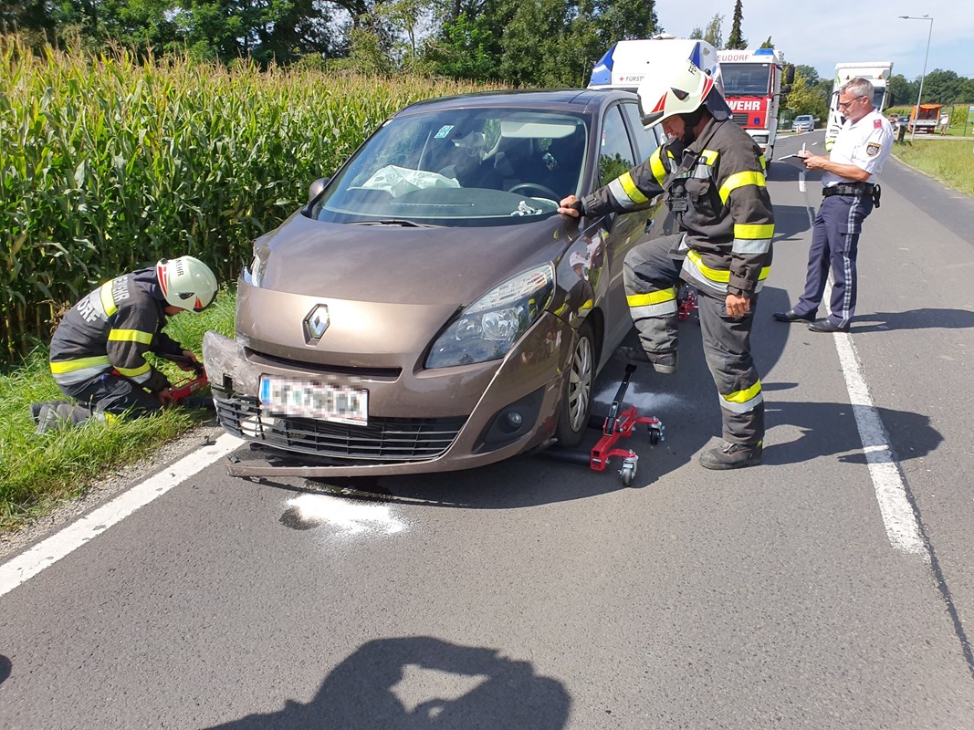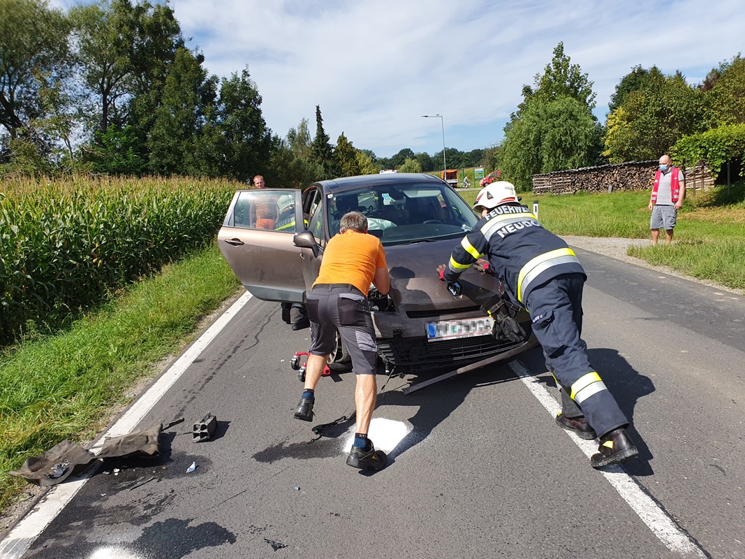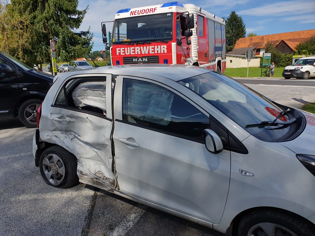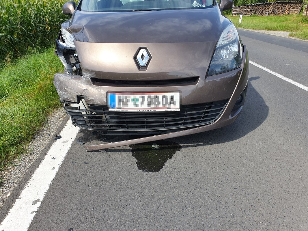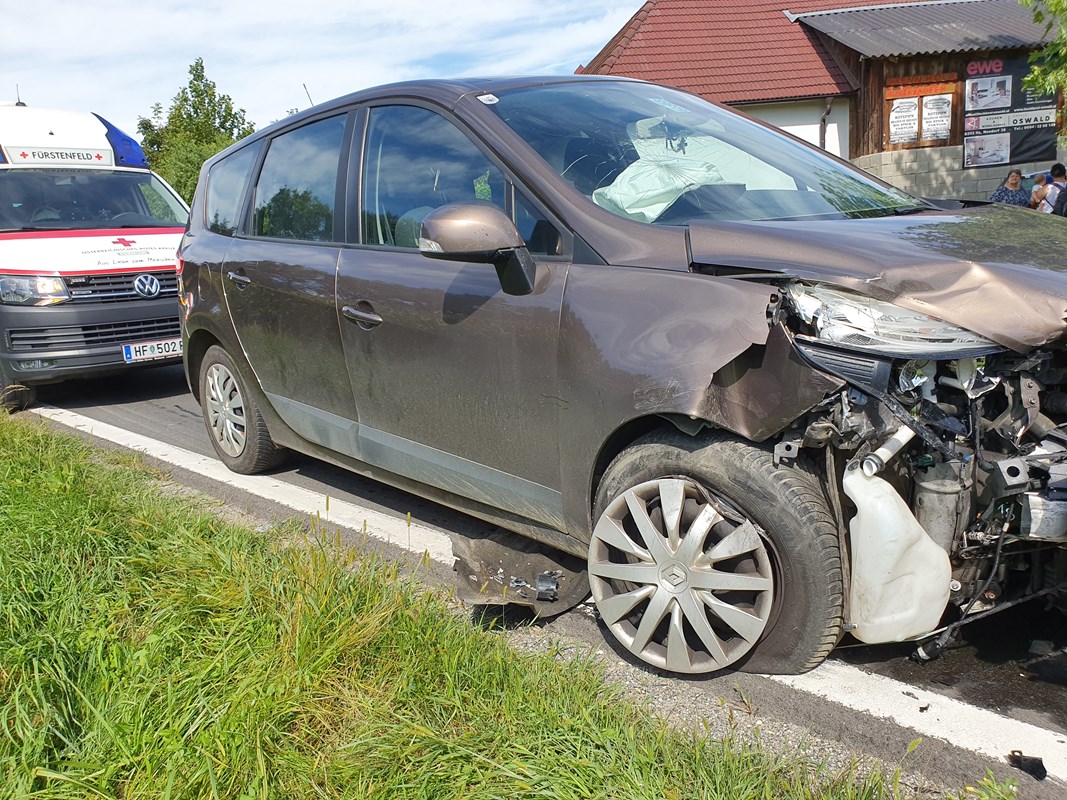 An der Kreuzung B56 Gleisdorfer Straße - Reigers Bergweg krachten zwei PKW bei einem Abbiegemanöver zusammen, dabei wurden die Insassen beider KFZ leicht verletzt.