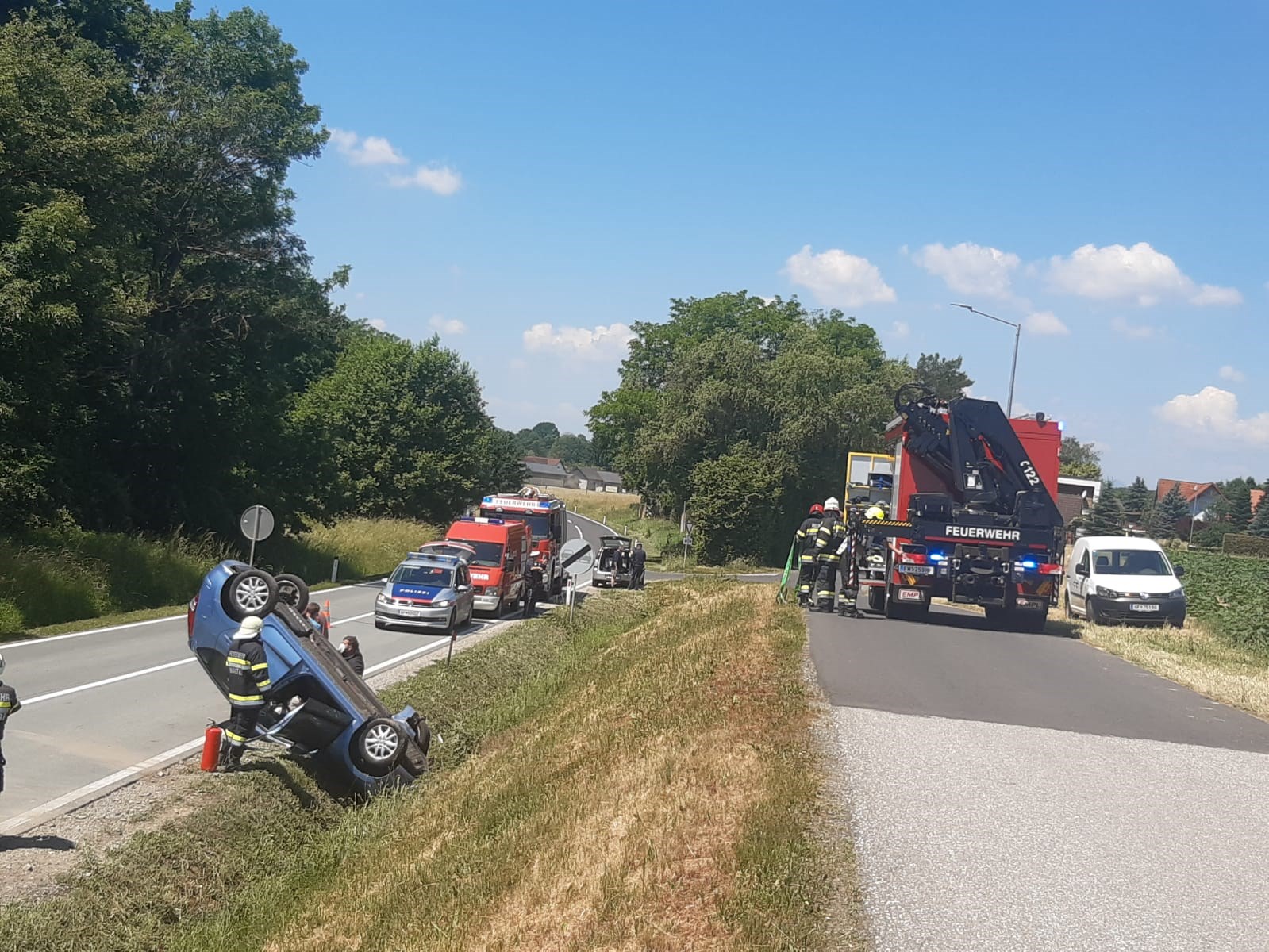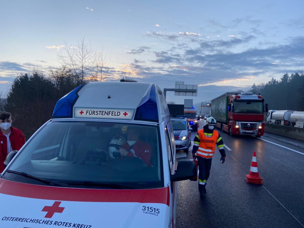 LKW auf matschiger Fahrbahn in Leitwand gekracht 13.12.2021 LKW krachte auf der A2 in die Mittelleitwand Mehr BMA Alarm 02.12.2021 Brandmeldeanlagen Alarm bei der Firma Josef Steiner GmbH Mehr LKW auf nassem Feldweg hängen geblieben 03.11.2021 Nach Kanalreinigungsarbeiten fuhr sich der LKW fest Mehr PKW auf LKW aufgefahren 25.08.2021 Der Rückweg aus dem Urlaub endete mit einem Unfall Mehr Tierrettung auf der Autobahn 25.08.2021 Pferd im Anhänger verkeilt Mehr Treibstoffaustritt mitten in der Nacht 18.08.2021 Immer auf den Zapfhahn achten! Mehr Rauchender PKW auf der Autobahn 12.07.2021 A2 in beide Richtungen befahren Mehr Tesla in Gartenanlage gekracht 11.07.2021 Lenker von nasser Fahrbahn abgekommen Mehr Auffahrunfall auf der B65 im I-Gebiet in Neudorf 08.07.2021 Drei PKW gerieten in den frühen Morgenstunden aneinander Mehr ÖL-Spur quer durch Ilz bis Neudorf 04.07.2021 Traktor zog 2km lange Öl-Spur Mehr BMA Alarm Fa. Magna 27.06.2021 Fehlalarm durch Brandmeldeanlage Mehr Verkehrsunfall auf der B65 in Nestelbach 21.06.2021 Lenker unbestimmten Grades verletzt Mehr Zetigleich zwei Einsätze inherhalb weniger Meter auf der A2 18.06.2021 Auffahrunfall und PKW Brand auf der A2 kurz vor Sinabelkirchen Mehr Verkehrsunfall auf der B65 in Neudorf 16.06.2021 Auf höhe der Ortseinfahrt Scharmer überschlug sich ein PKW Mehr PKW-Brand auf der A2 kurz vor Sinabelkirchen 10.06.2021 PKW begann im Motorraum zu brennen, FF Vorau zufällig vor Ort Mehr LKW Bergung auf der A2 02.06.2021 LKW beim Abladen umgekippt, Lenker mit Hubschrauber ins LKH geflogen Mehr Verkehrsunfall am Ende einer Tagesbaustelle 13.04.2021 Auf der A2 gerieten zwei PKW aneinander Mehr Wohnhausbrand in Neudorf 08.04.2021 Brand in einer Zwischenwand im Dachgeschoss Mehr Wohnungsöffnung in Ilz 22.03.2021 Kleinkind sperrte Mutter auf Balkon Mehr Verkehrsunfall auf der A2 Fahrtrichtung Wien 17.03.2021 LKW rammte PKW nach Reifenschaden Mehr Verkehrsunfall bei Autobahnabfahrt Sinabelkirchen 12.03.2021 Auffahrunfall auf dem Verzögerungsstreifen Mehr LKW schaffte es nicht in die Werkstatt 03.03.2021 Hydrauliköl begann zu kochen Mehr Fahrzeugbergung am Neujahrstag 01.01.2021 Eisige Fahrbahnverhältnisse wurden PKW Fahrer zum Verhängnis Mehr