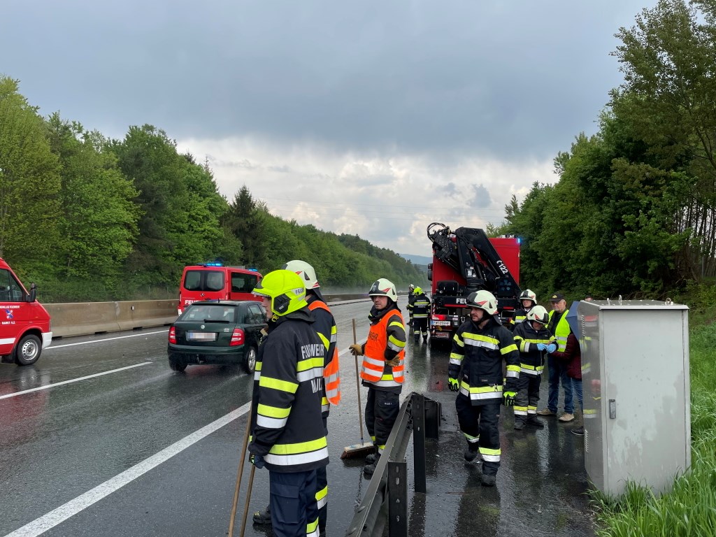 An diesem regnerischen Muttertag-Nachmittag wurden wir zusammen mit den Kameraden der FF Markt Ilz und der FF Bad Waltersdorf zu einem Unfall mit zwei PKW auf die A2 gerufen.