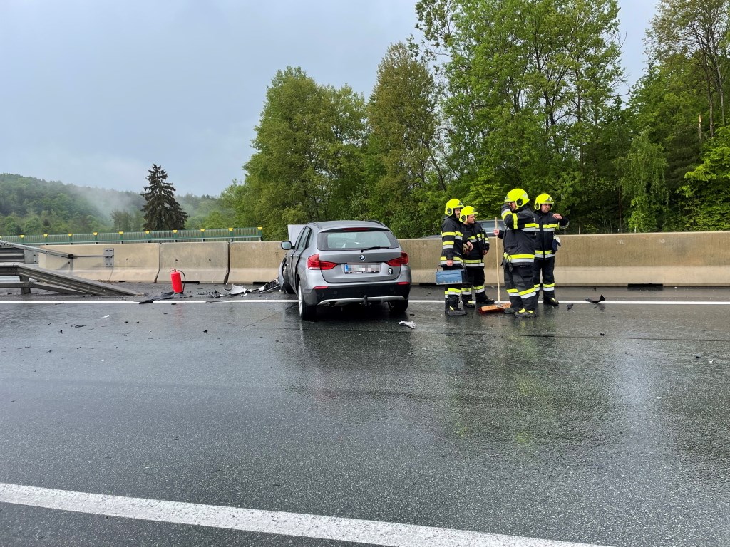 In Fahrtrichtung Wien bei km 128,00, also kurz vor der Abfahrt Sebersdorf/Bad Waltersdorf touchierten sich aus unerklärten Gründen zwei Fahrzeuge, ein Lenker verlor die Kontrolle und krachte in die Betonleitwand. Ein weiterer PKW kam zum Stillstand, da dieser durch herumliegende Trümmer einen Reifenschaden erlitt.