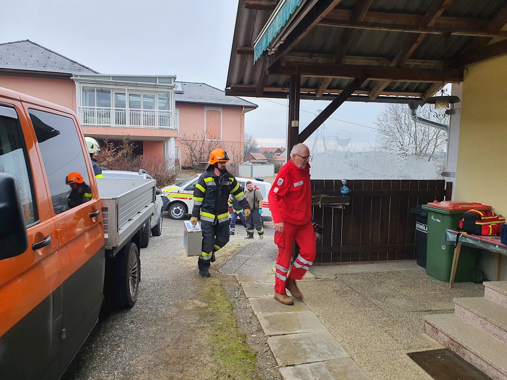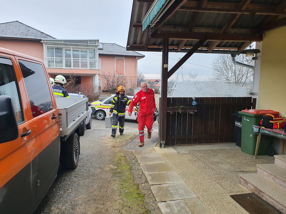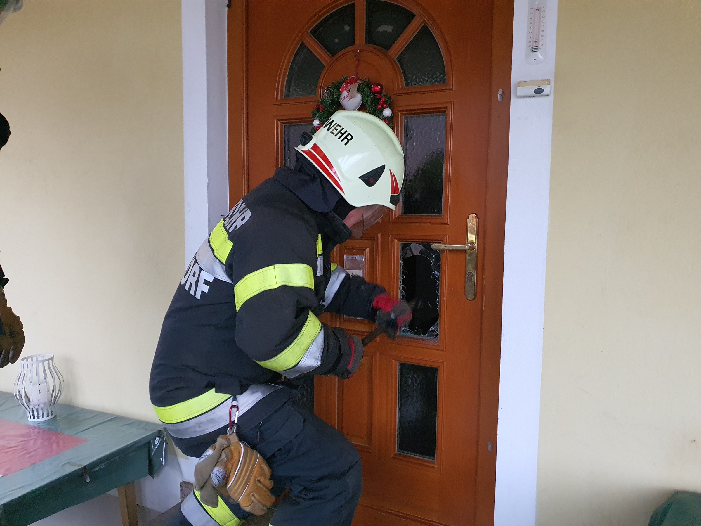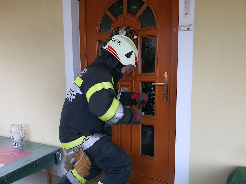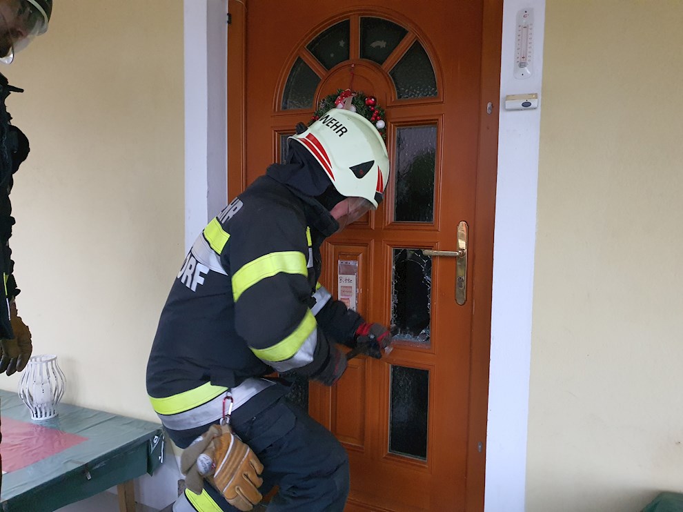 Nach kurzem erkunden der Lage und vernommenen Hilferufen wurde die Haustür des Wohnhauses gewaltsam geöffnet um schnellstmöglich zutritt zu erlangen. In den Räumlichkeiten fanden wir eine in einem Klappbett eingeklemmte Frau vor. Auch das Backrohr wahr noch in Betrieb und es entstand bereits Qualm und Brandgeruch.