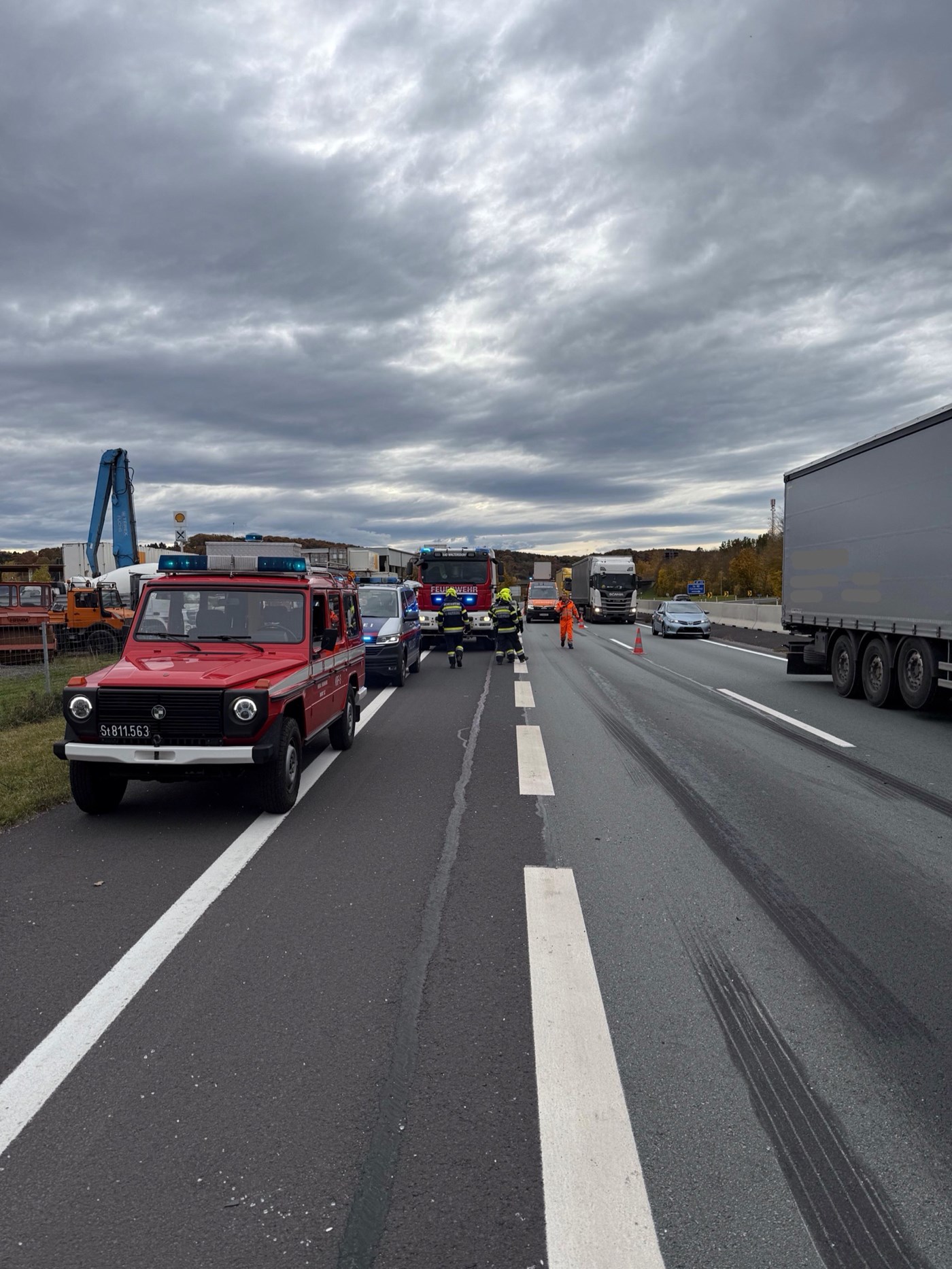 Am Donnerstag dem 30. Oktober 2025 wurde die Feuerwehr Neudorf bei Ilz zu einem großen Verkehrsunfall auf der A2 alarmiert. Bei dem Unfall waren drei Lastkraftwagen und ein Personenkraftwagen beteiligt. Glücklicherweise gab es keine verletzten Personen und der Sachschaden an den Unfallfahrzeugen blieb beschränkt. Dank guter Zusammenarbeit mit den Kameraden der FF Markt Ilz und der FF Bad Waltersdorf konnte die Unfallstelle schnell gereinigt und wieder für den Verkehr freigegeben werden. Die Einsatzbereitschaft konnte bereits um 14:40 Uhr wieder hergestellt werden.