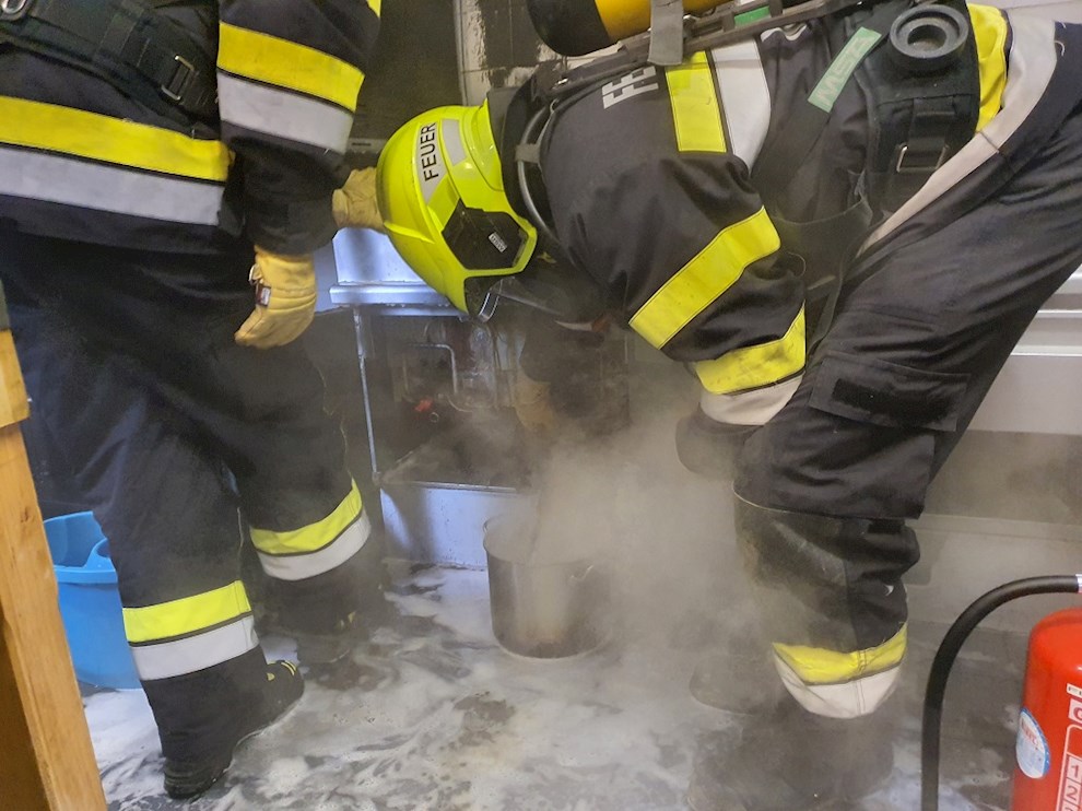 obwohl ein benachbartes Brandschutzunternehmen rasch mit zwei Fettbrandlöschern zur stelle war.
