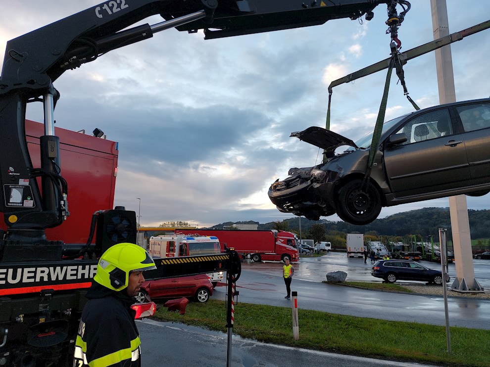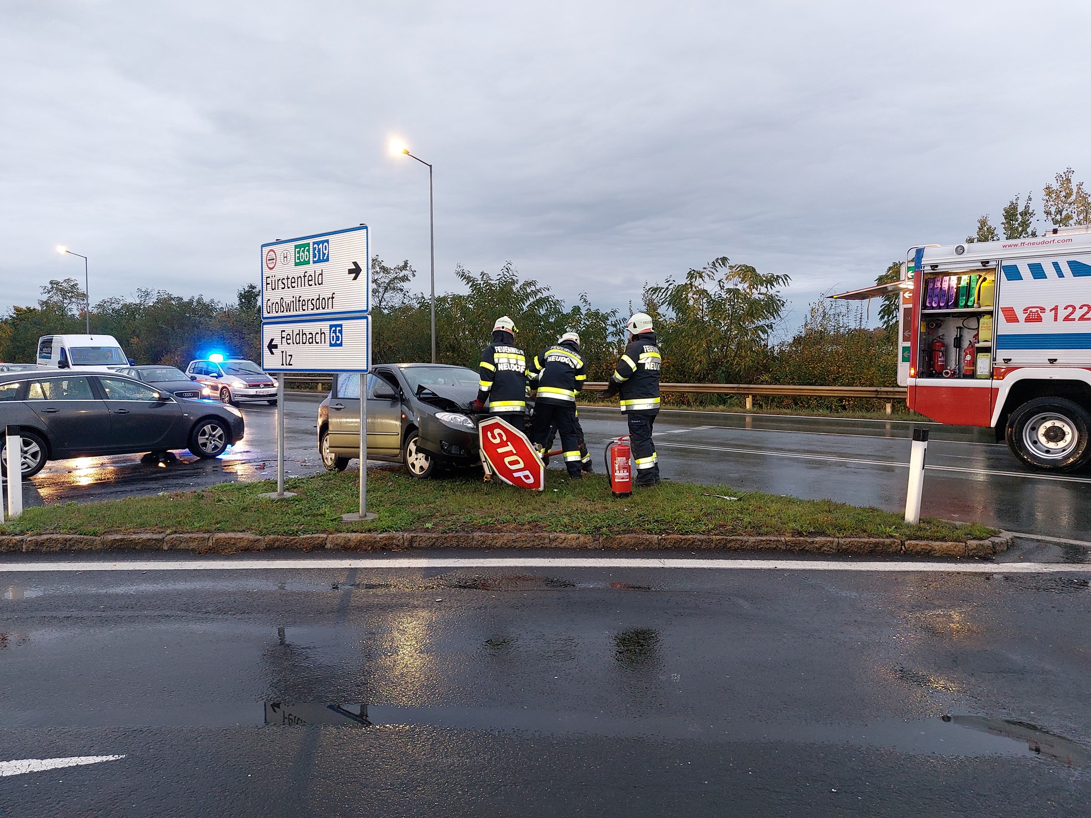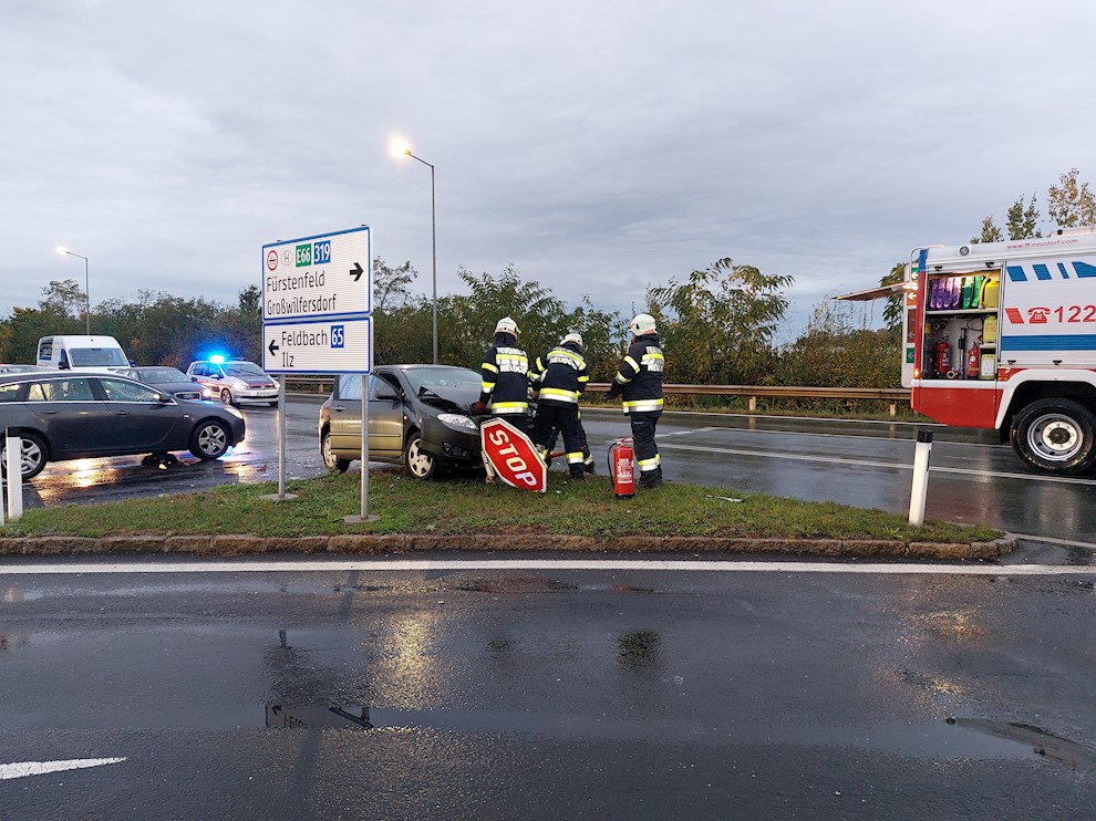 Im Frühverkehr ereignete sich auf der B65 auf Höhe der Autobahnauffahrt Ilz-Fürstenfeld ein Frontalzusammenstoß mit zwei PKW.