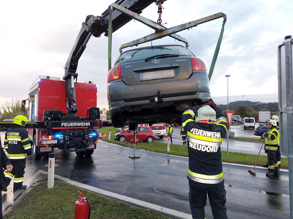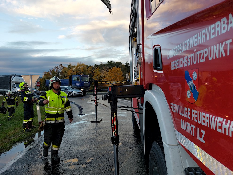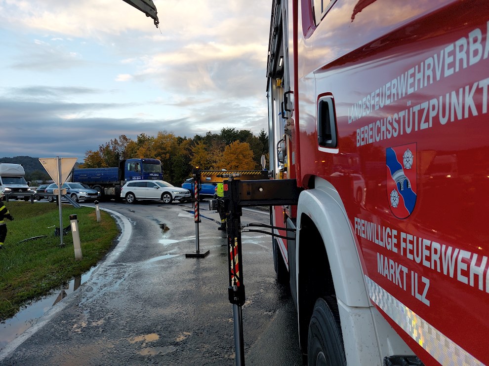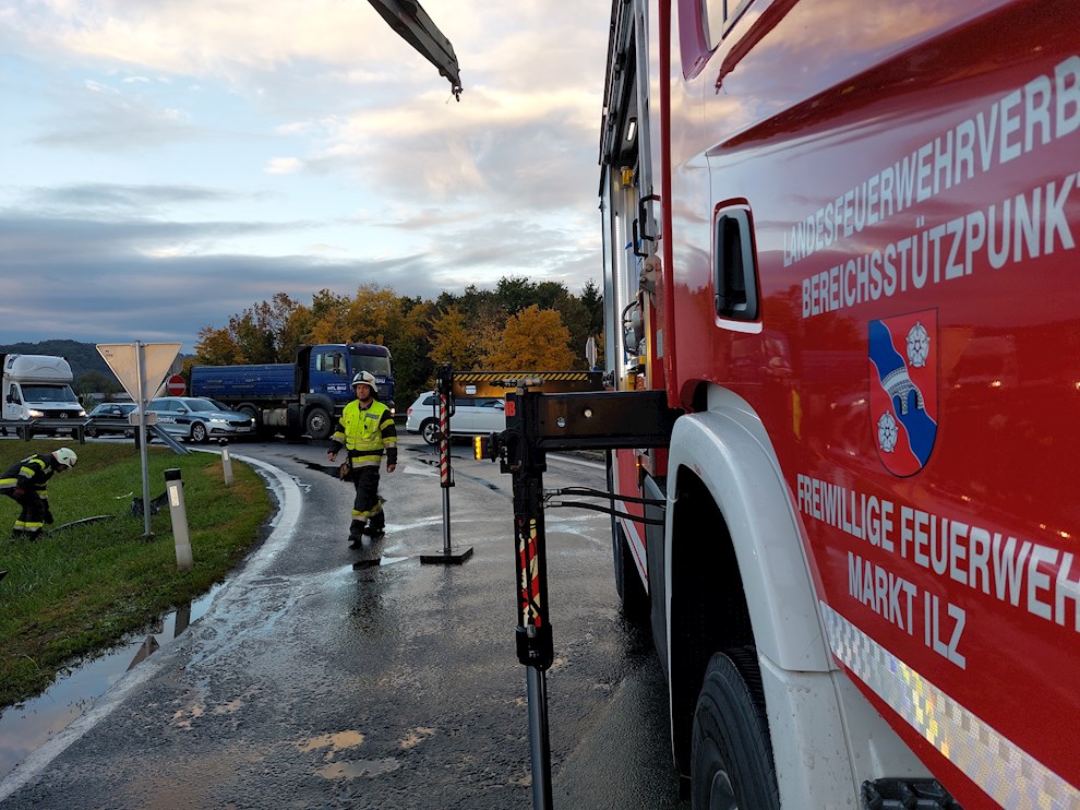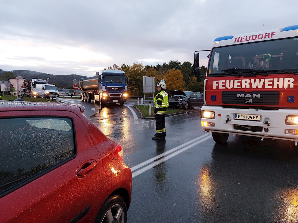Um 07:18 Uhr wurden die Feuerwehren Neudorf und Ilz Alarmiert. Ihre Aufgabe bestand darin einen Brandschutz herzustellen, die Unfallautos von der Fahrbahn zu entfernen und die Fahrbahn zu reinigen. Die beiden KFZ wurden mit dem Kran auf den angrenzenden Grünstreifen gehoben, somit konnte nach gut einer Stunde die B65 wieder störungsfrei Befahren werden.