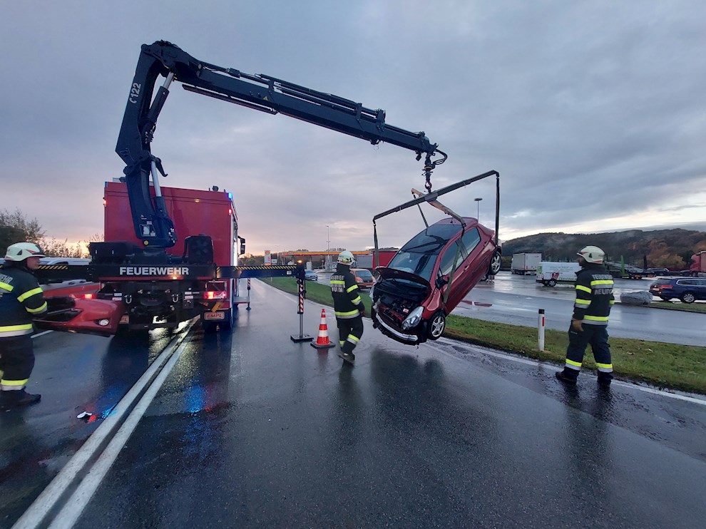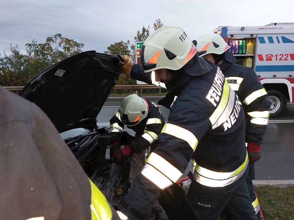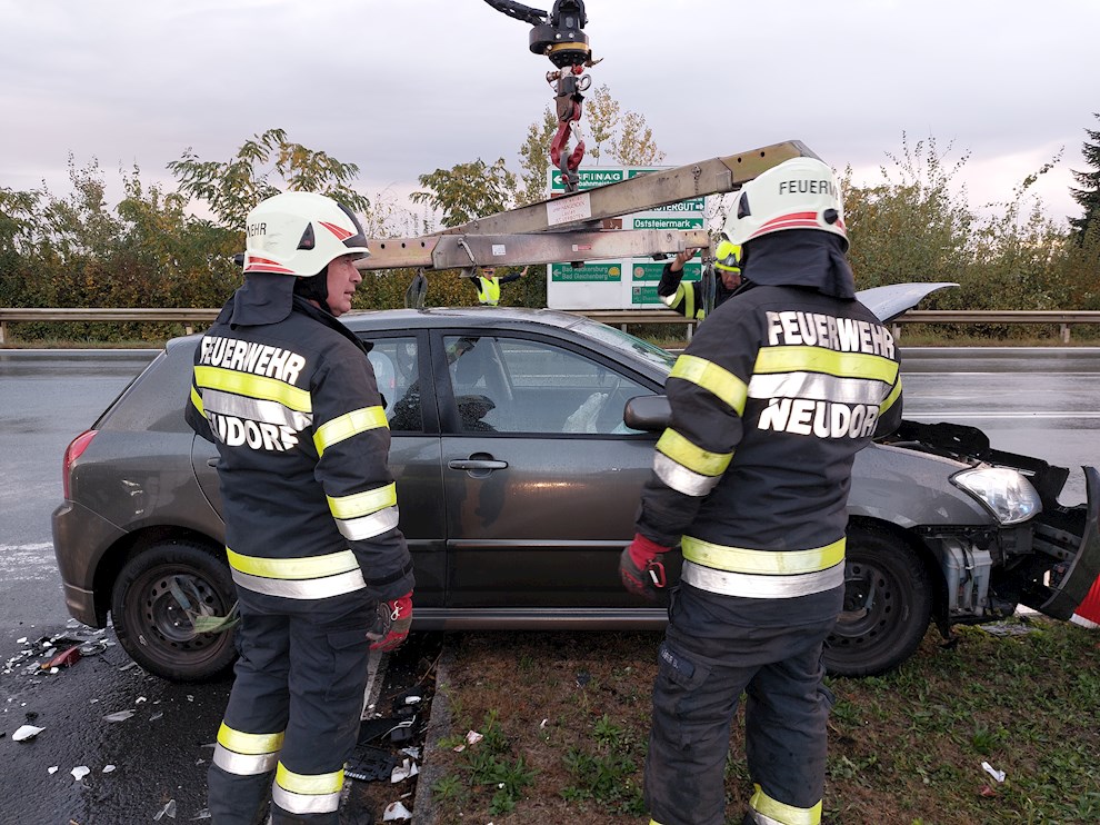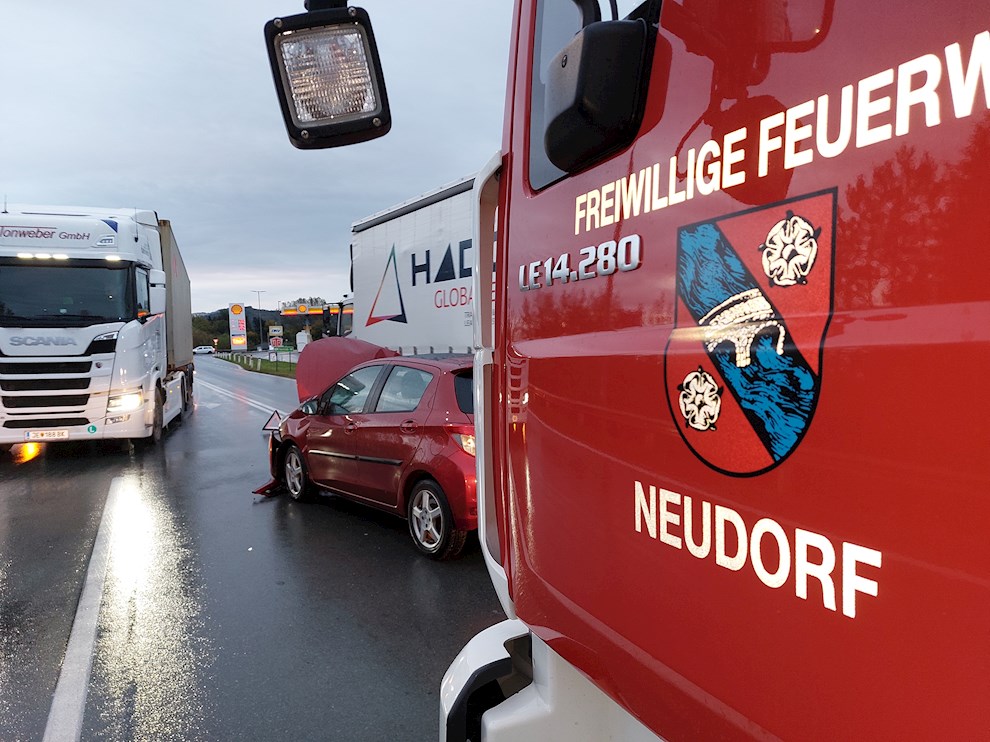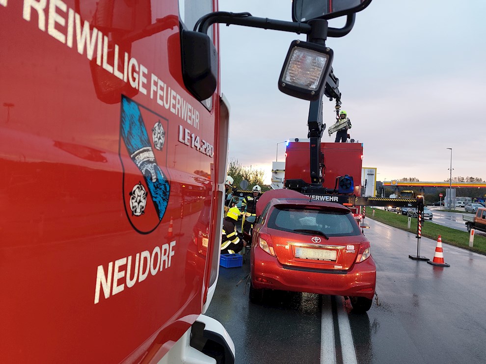 Um 07:18 Uhr wurden die Feuerwehren Neudorf und Ilz Alarmiert. Ihre Aufgabe bestand darin einen Brandschutz herzustellen, die Unfallautos von der Fahrbahn zu entfernen und die Fahrbahn zu reinigen. Die beiden KFZ wurden mit dem Kran auf den angrenzenden Grünstreifen gehoben, somit konnte nach gut einer Stunde die B65 wieder störungsfrei Befahren werden.