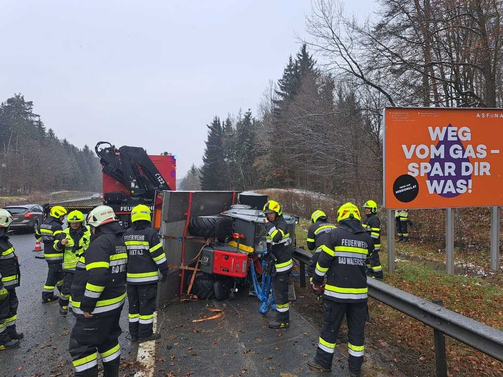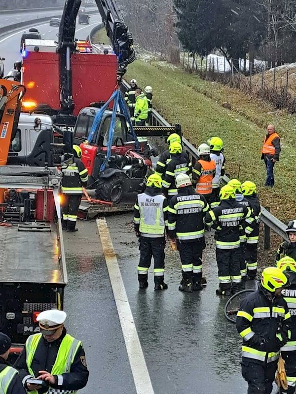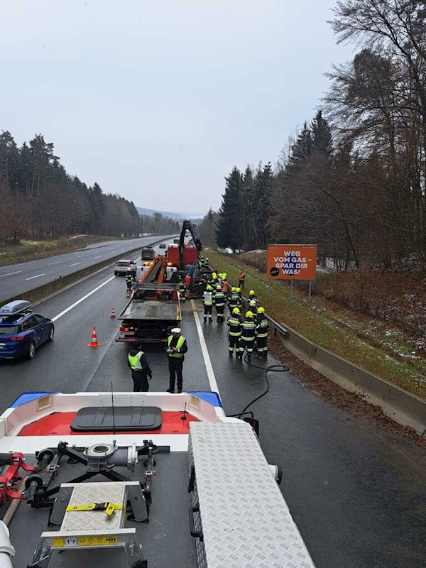 Die Unfallstelle wurde abgesichert und ein zweifacher Brandschutz aufgebaut. Mittels Kran wurde der Lader und später auch das Zugfahrzeug auf einen Abschlepptransporter geladen. Danach wurde noch die Fahrbahn gereinigt, anschließend konnte die Einsatzbereitschaft wieder hergestellt werden.