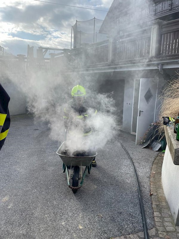 Beim Eintreffen konnte schon Brandgeruch und Qualm vernommen werden, also wurde mit schwerem Atemschutz und HD-Löschleitung in Richtung des Brandraums vorgegangen. Im Heizraum des Hauses kam es vermutlich durch einen Technischen Defekt zu einem Kabelbrand. Dieser konnte rasch gelöscht werden. Anschließend wurden mit der Wärmebildkamera noch etwaige Hitzequellen ausgemacht und der Brennraum der Heizung entleert.