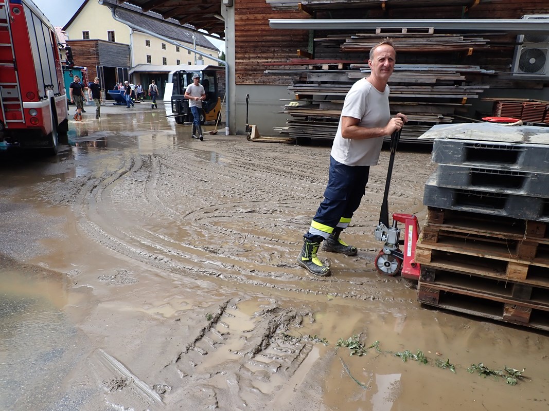 Als Reporter durfte ich einige “Schadstellen” besuchen und auch das eine oder andere Wort mit den Betroffenen des Hochwassers wechseln. Ich muss sagen es ist schon bewundernswert wie dankbar auf die Hilfe reagiert wird. Und dass trotz der teilweise Existenzbedrohenden Zustände die “Heimschuher” ihren Humor und ihre Freundlichkeit wahren. Alle packten mit an!