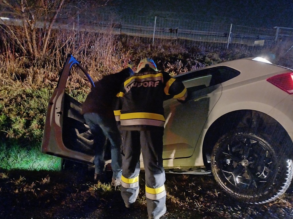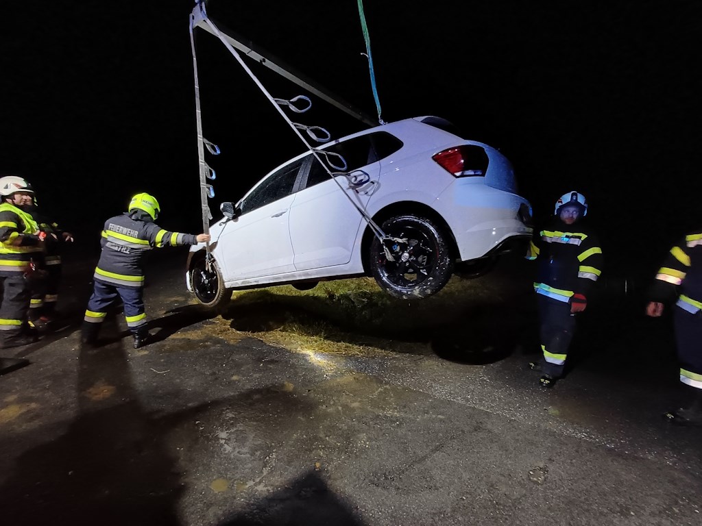 An diesem verregneten Dienstagabend wurde die FF Neudorf zu einer Fahrzeugbergung am Striegelfeldweg, einer Begleitstraße der A2 in Ilz, gerufen.
