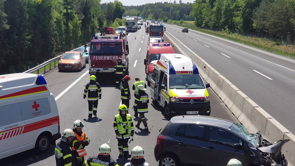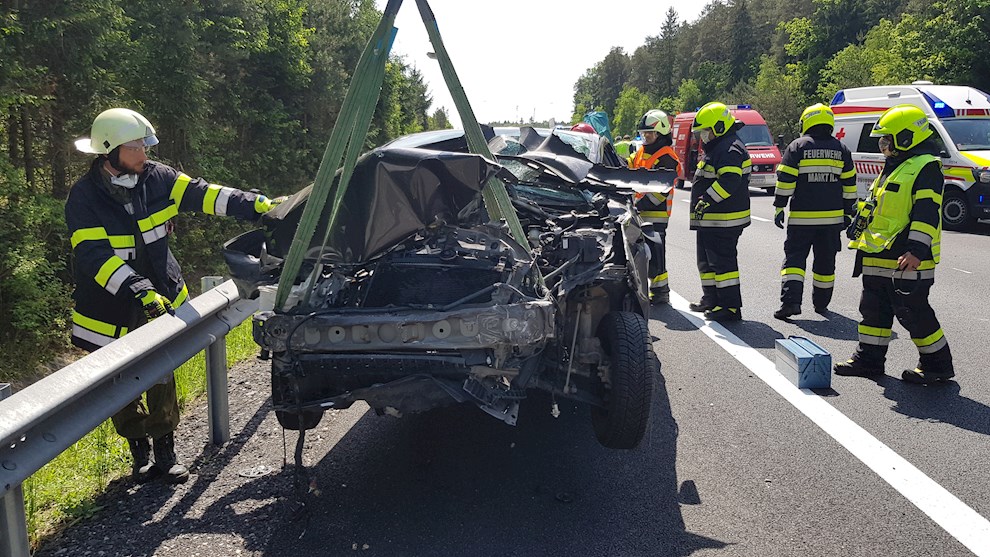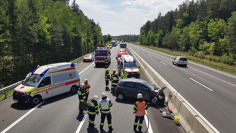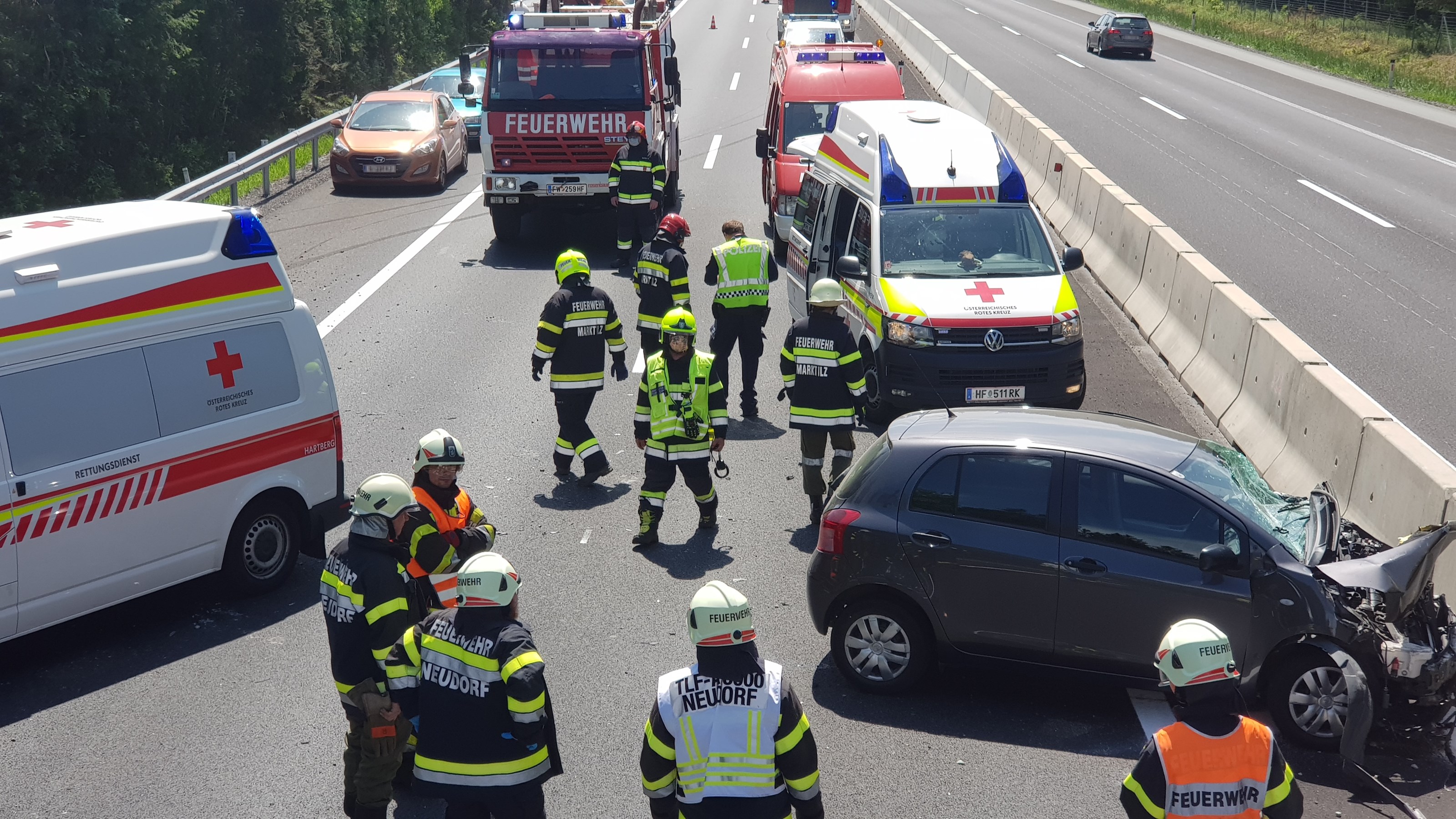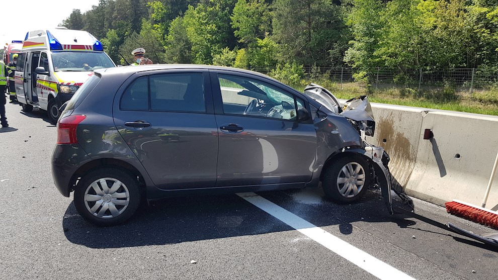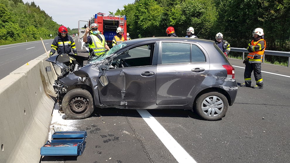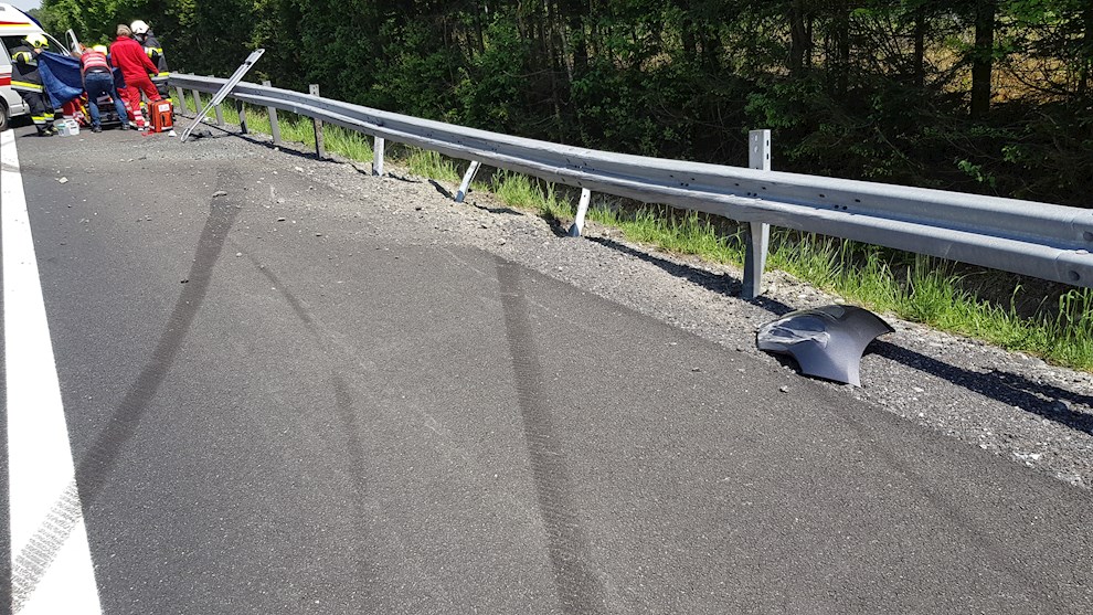 Ein PKW-Lenker verlor aus ungeklärter Ursache die Kontrolle über sein Fahrzeug, welches die Leitschienen touchierte und in die Beton-Mittelleitwand krachte.