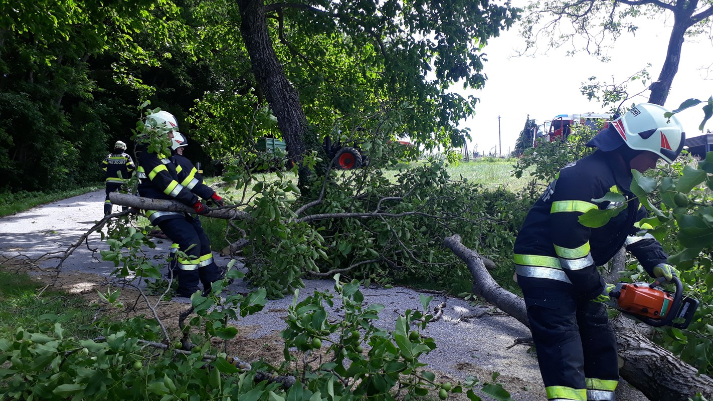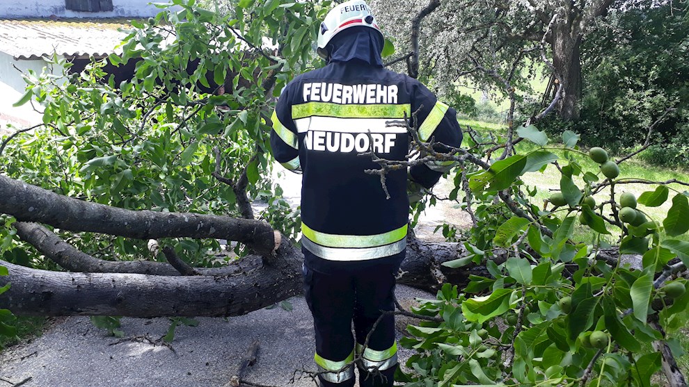 Ein Nussbaum hielt den starken Windböen nicht mehr stand und blockierte eine Hauszufahrt.