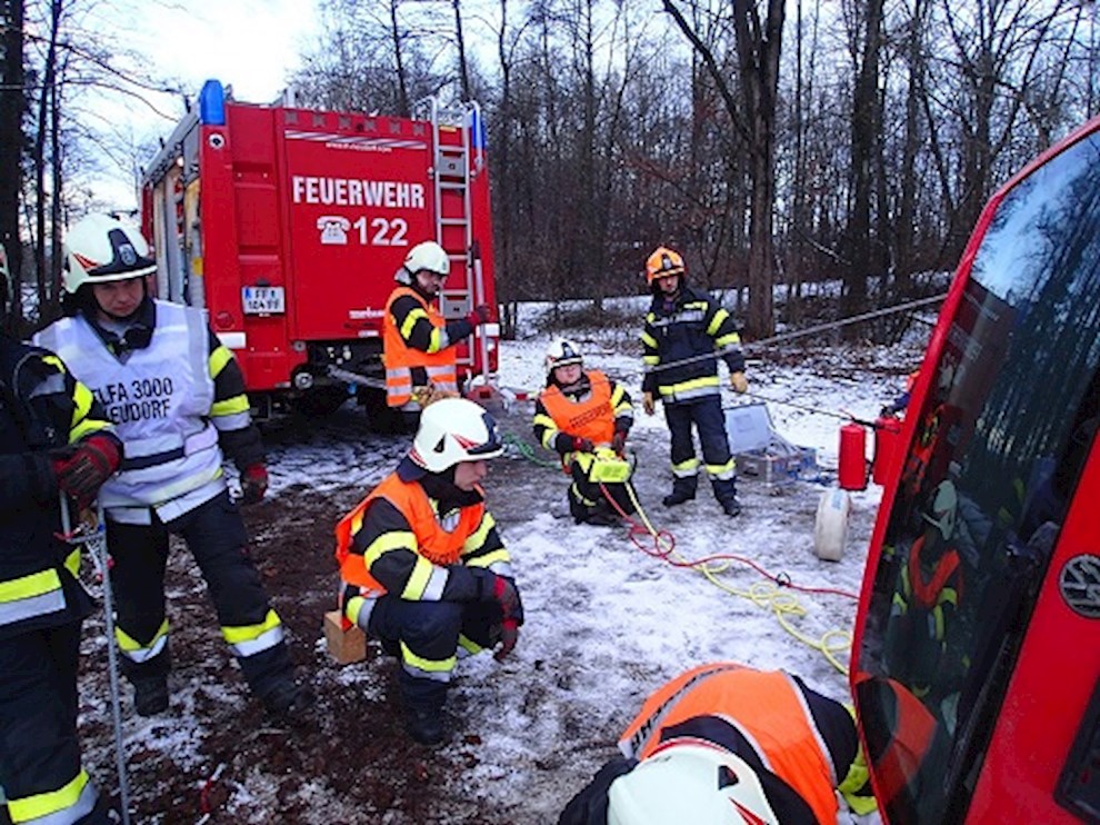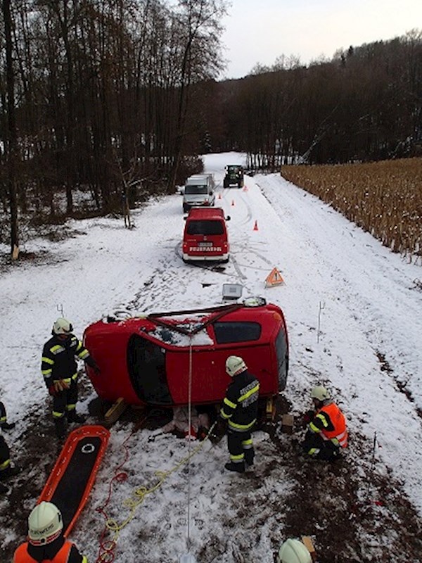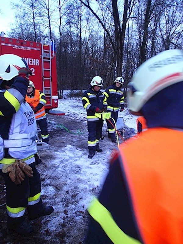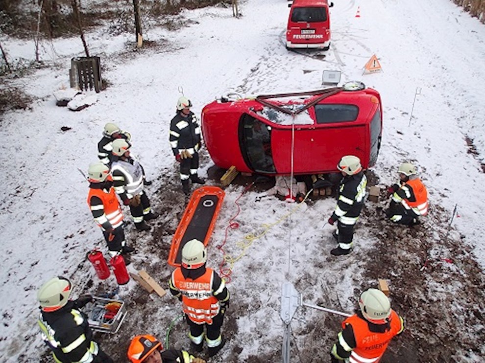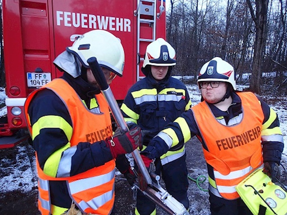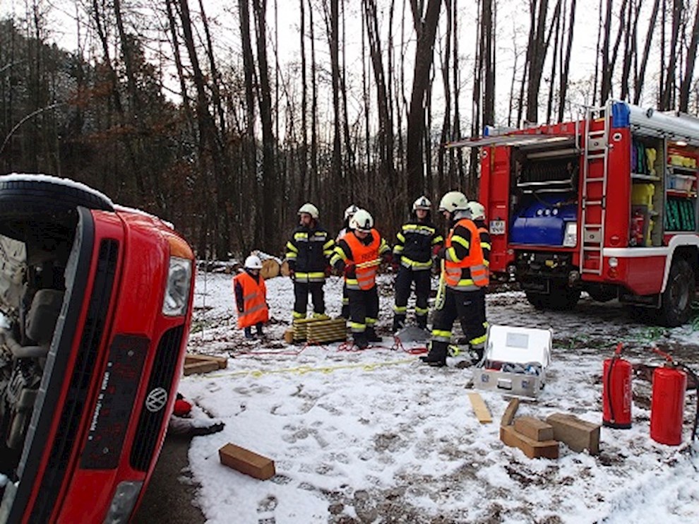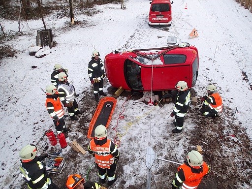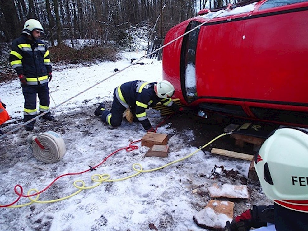 Ein Verkehrsunfall mit einer eingeklemmten Person stellte das Übungsszenario dar. Mit Pneumatischen-Hebekissen wurde das Fahrzeug angehoben und mit einem Greif-Zug gesichert um den Verletzten bergen zu können. Anschließend wurde das KFZ durch mehrmaliges unterbauen der Hebekissen aufgerichtet und mit dem Greif-Zug langsam auf die Räder gestellt. Auch der Umgang bzw. die Versorgung von Verletzten sowie der allgemeine Ablauf eines Einsatzes, also Absicherung der Unfallstelle; Einteilung der Kameraden; Verhalten am Einsatzort; Handhabung der Funkgeräte; etc., waren Teil dieser Übung.