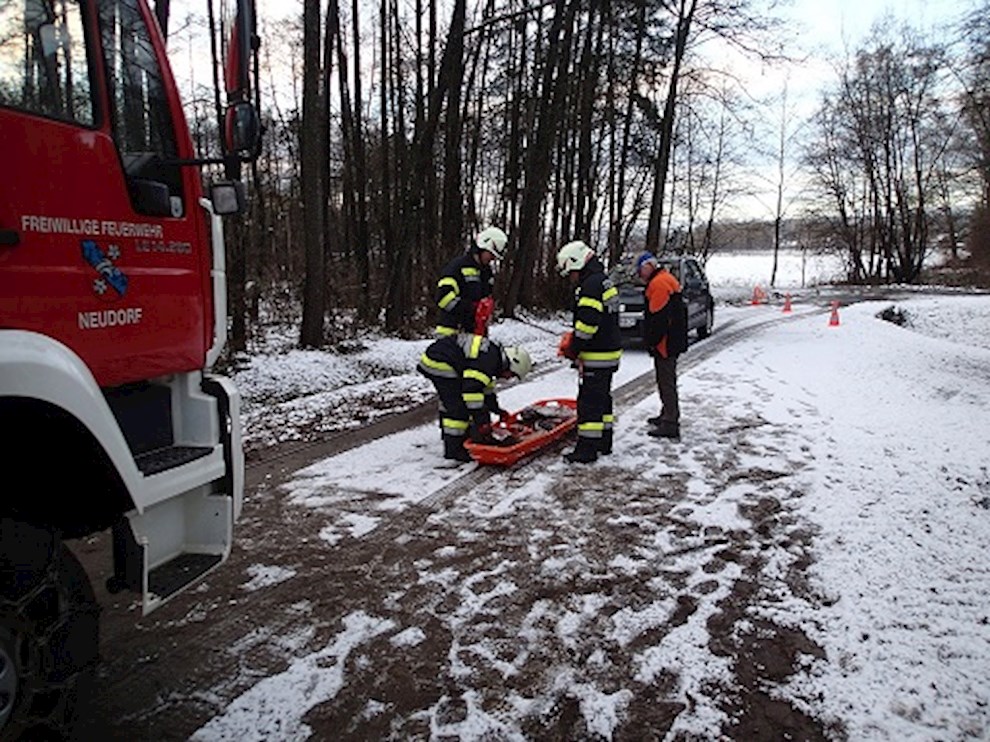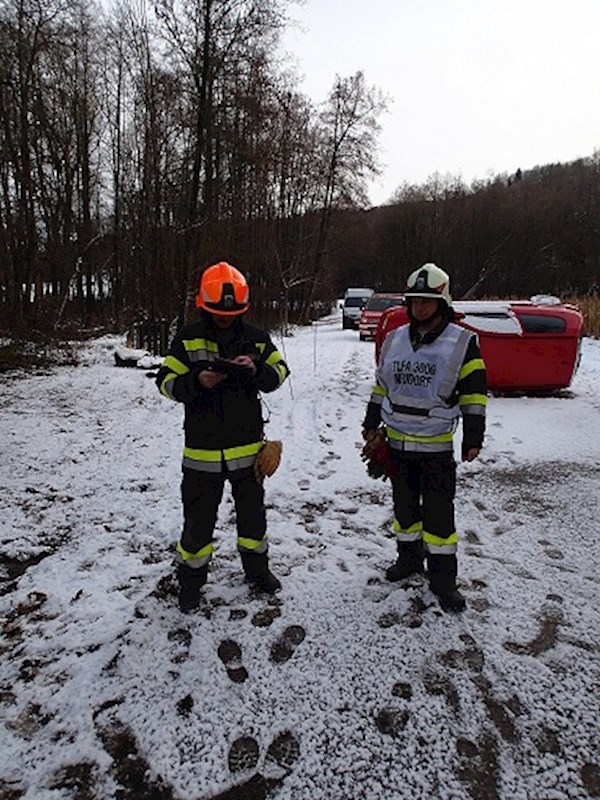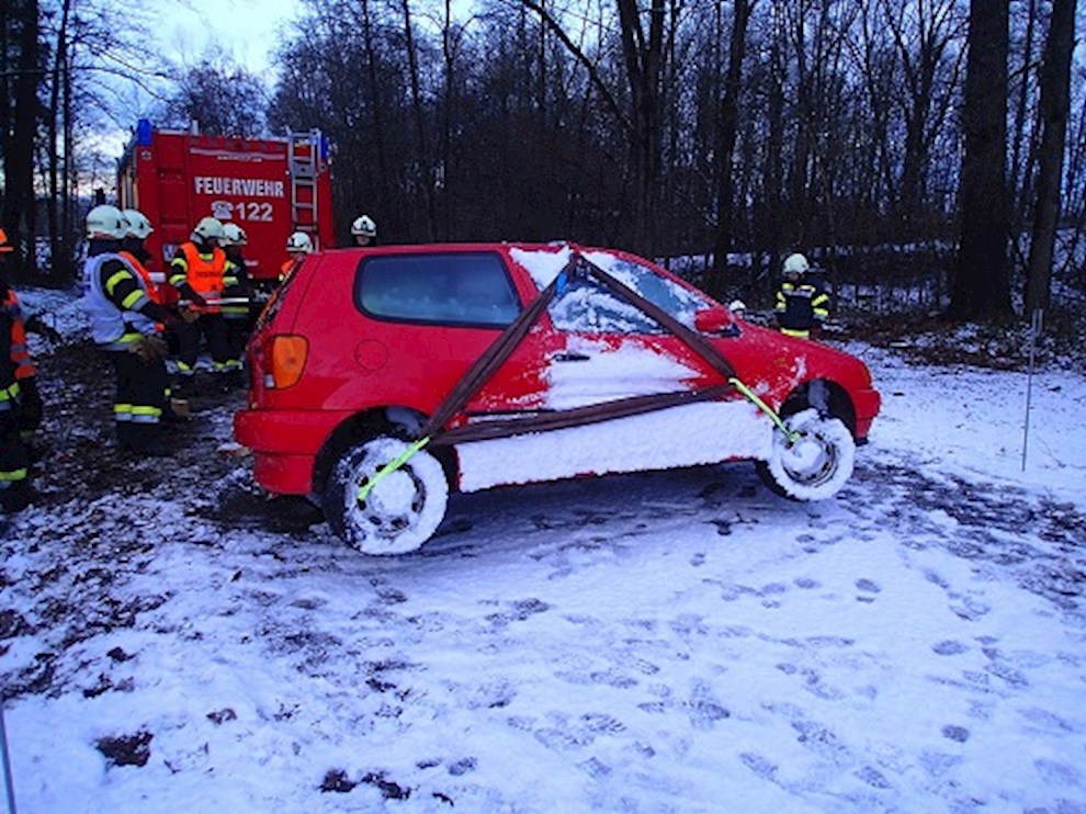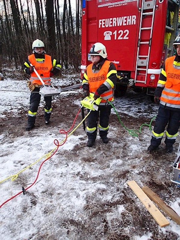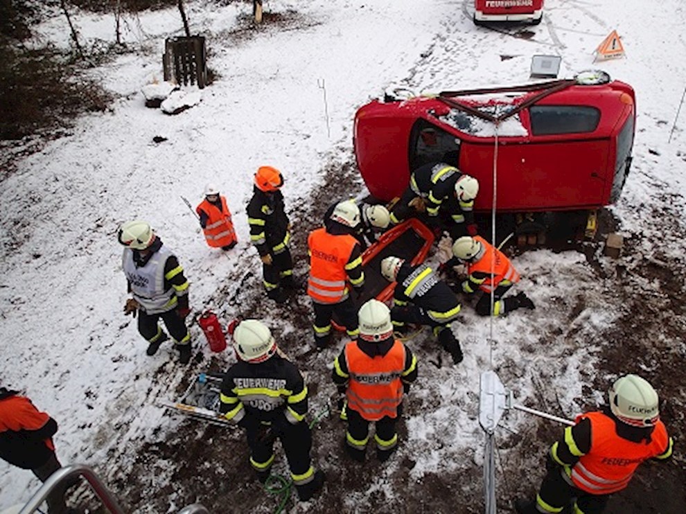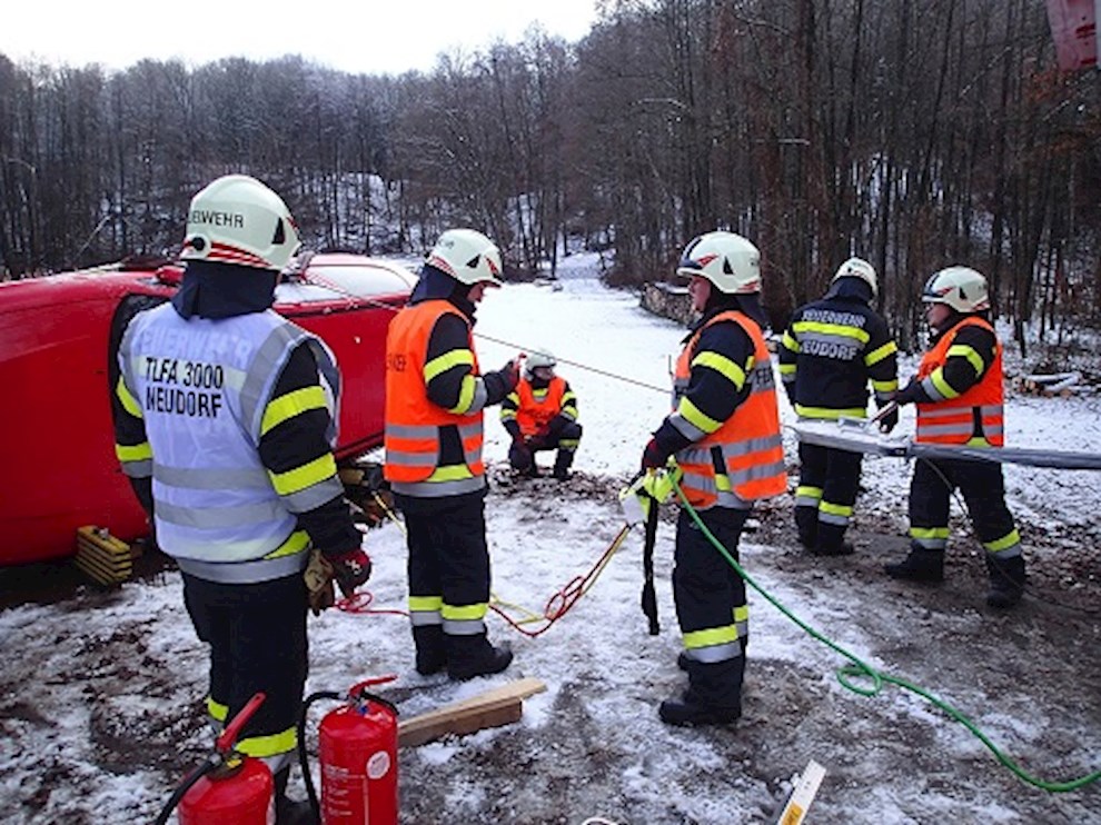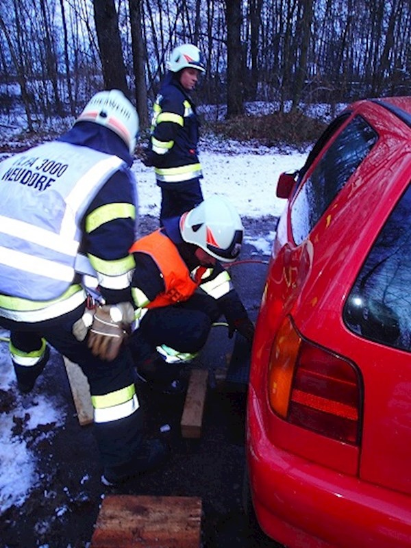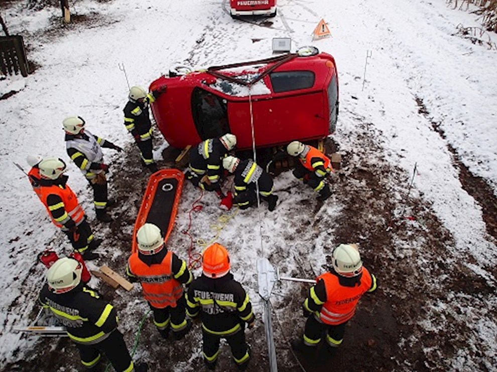 Ein Verkehrsunfall mit einer eingeklemmten Person stellte das Übungsszenario dar. Mit Pneumatischen-Hebekissen wurde das Fahrzeug angehoben und mit einem Greif-Zug gesichert um den Verletzten bergen zu können. Anschließend wurde das KFZ durch mehrmaliges unterbauen der Hebekissen aufgerichtet und mit dem Greif-Zug langsam auf die Räder gestellt. Auch der Umgang bzw. die Versorgung von Verletzten sowie der allgemeine Ablauf eines Einsatzes, also Absicherung der Unfallstelle; Einteilung der Kameraden; Verhalten am Einsatzort; Handhabung der Funkgeräte; etc., waren Teil dieser Übung.