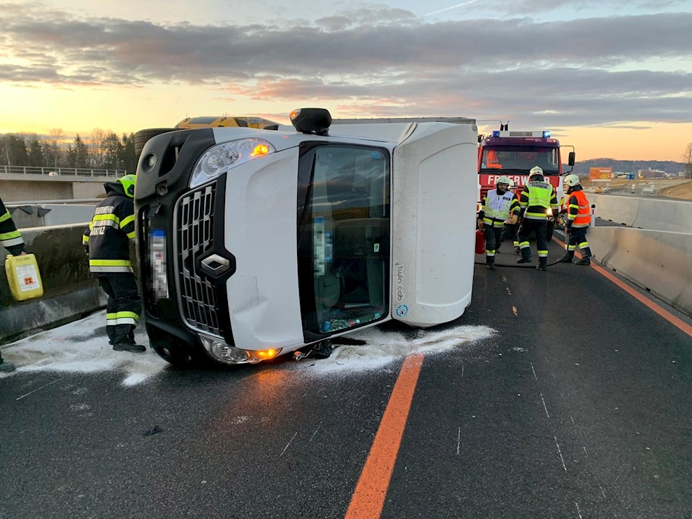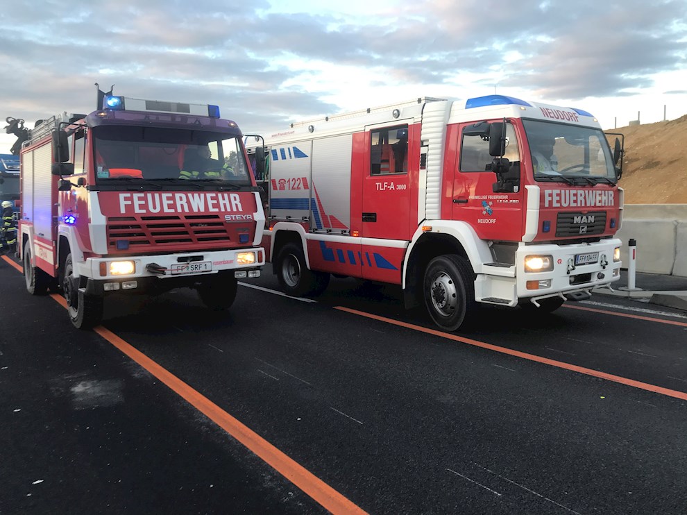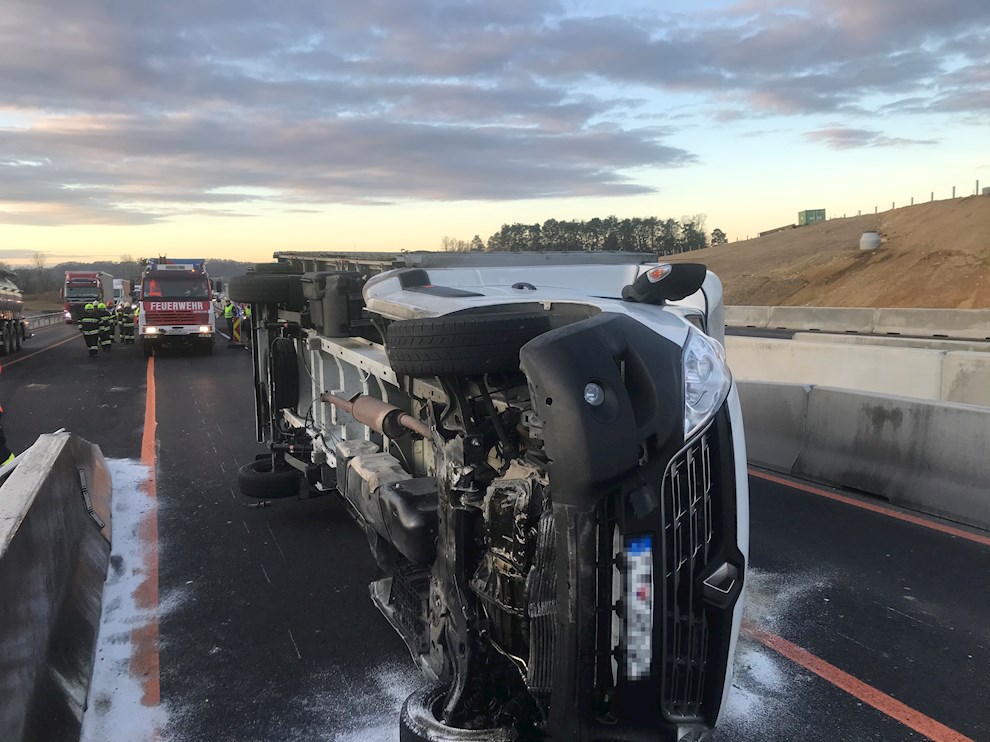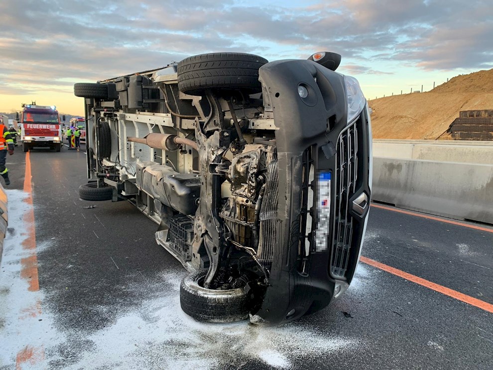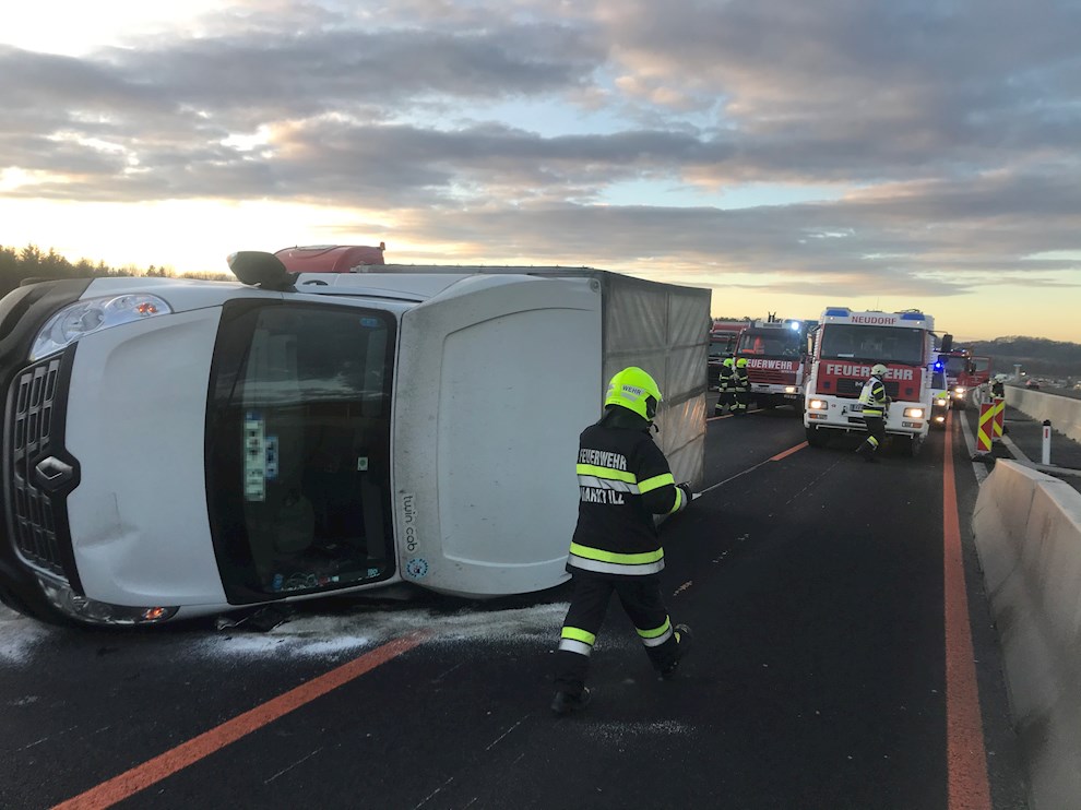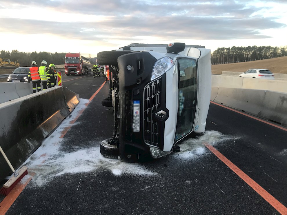 Beim Eintreffen am Unfallort zwischen der der Autobahnabfahrt Ilz/Fürstenfeld und Hohenbrugg (Baustellenbereich S7), fanden die Einsatzkräfte den umgestürzten Kleintransporter vor welcher die Fahrbahn blockierte.