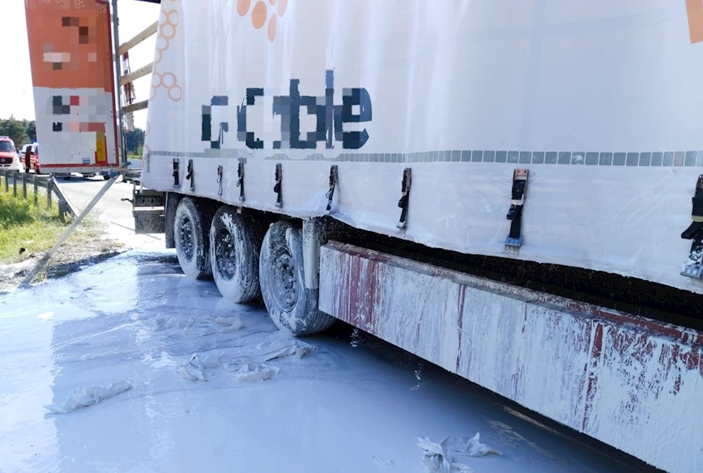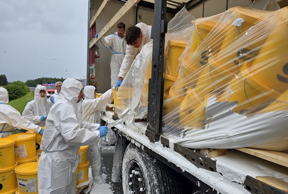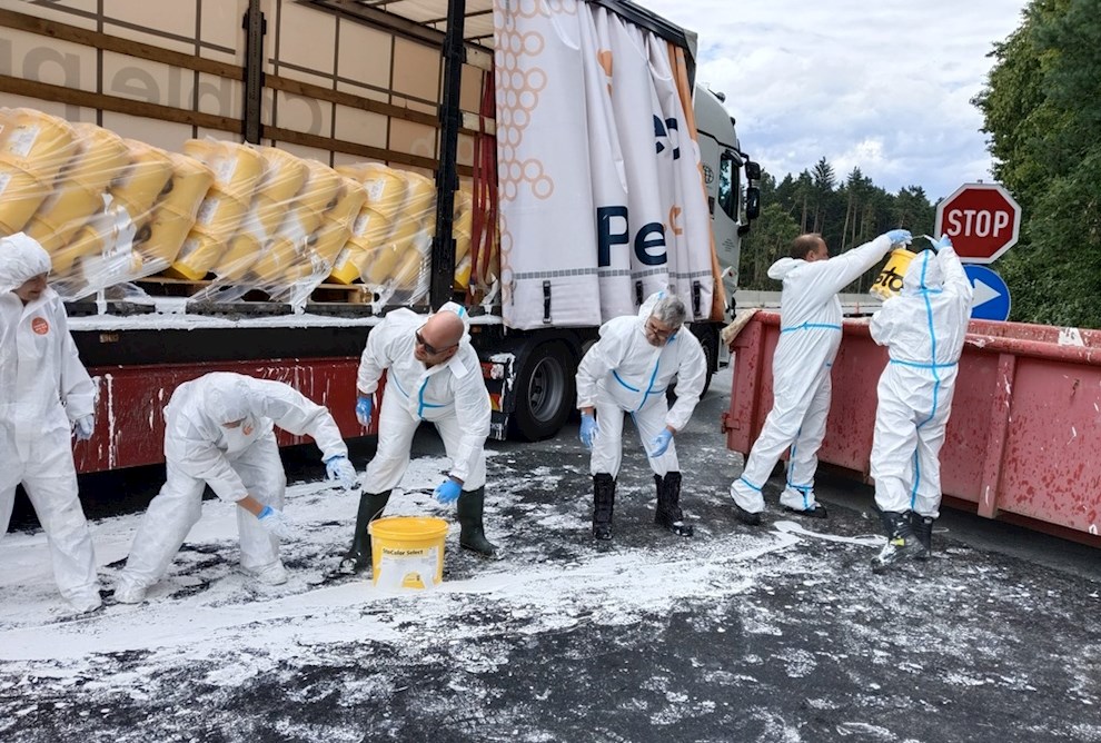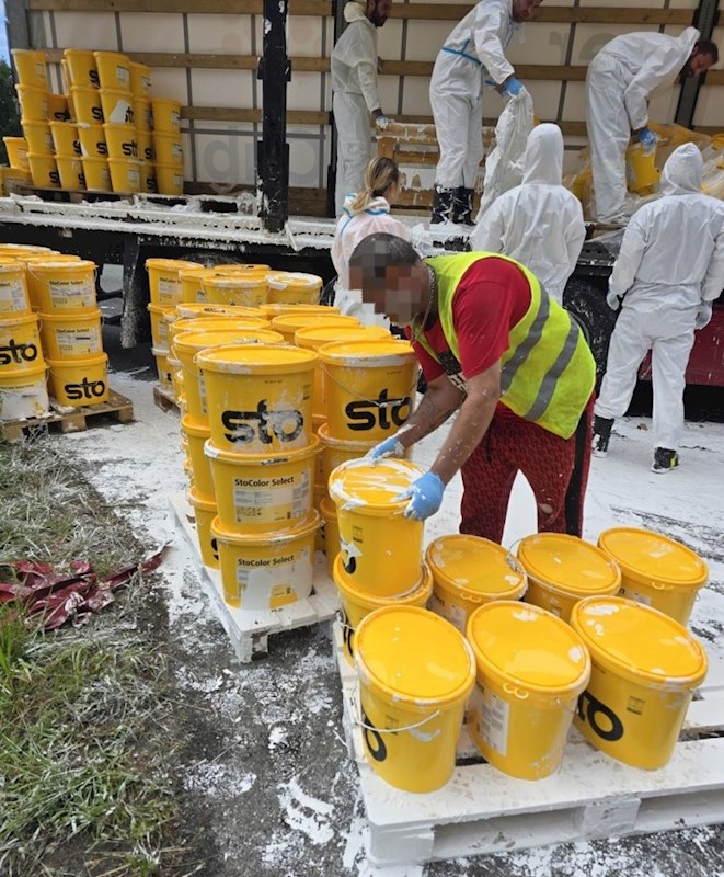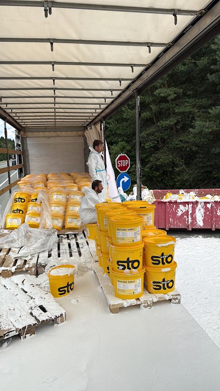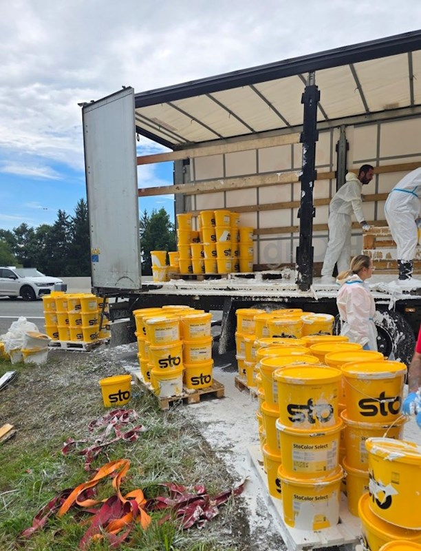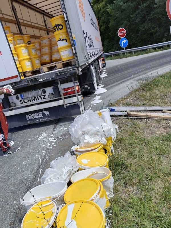 Unfall eines mit Farben beladenen Sattelschleppers